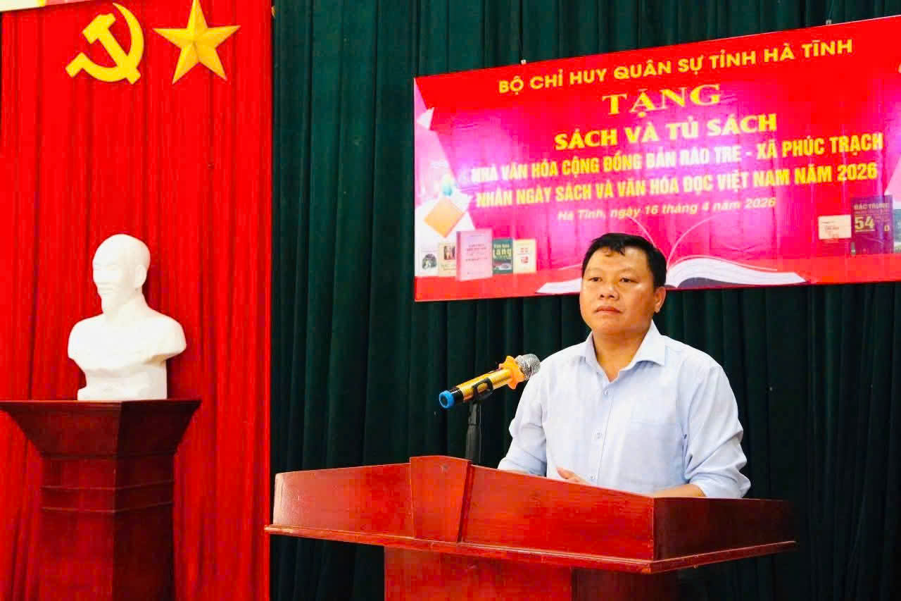 Phát biểu tại chương trình, đồng chí Hoàng Quốc Nhã – Bí thư Đảng ủy, Chủ tịch HĐND xã bày tỏ sự trân trọng và cảm ơn sâu sắc trước sự quan tâm của Bộ Chỉ huy Quân sự tỉnh. Đồng chí khẳng định, việc trao tặng sách không chỉ mang ý nghĩa vật chất mà còn có giá trị tinh thần to lớn, góp phần xây dựng đời sống văn hóa cơ sở, thúc đẩy phong trào đọc sách, hình thành thói quen học tập suốt đời trong nhân dân, đặc biệt là đối với bà con dân tộc Chứt. Đồng thời đề nghị Ban công tác bản Rào Tre cần quản lý, khai thác hiệu quả tủ sách, sắp xếp khoa học, tạo điều kiện thuận lợi để người dân dễ dàng tiếp cận, sử dụng, qua đó góp phần xây dựng đời sống văn hóa bản ngày càng phát triển. Đây là hoạt động thiết thực, thể hiện sự quan tâm của lực lượng vũ trang tỉnh Hà Tĩnh đối với đời sống văn hóa, tinh thần của đồng bào vùng sâu, vùng xa; góp phần củng cố mối quan hệ đoàn kết quân – dân, xây dựng thế trận lòng dân ngày càng vững chắc trên địa bàn.