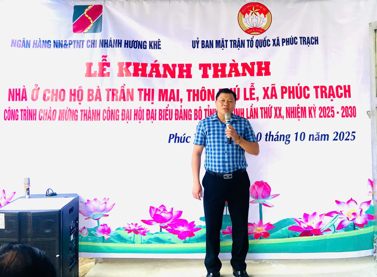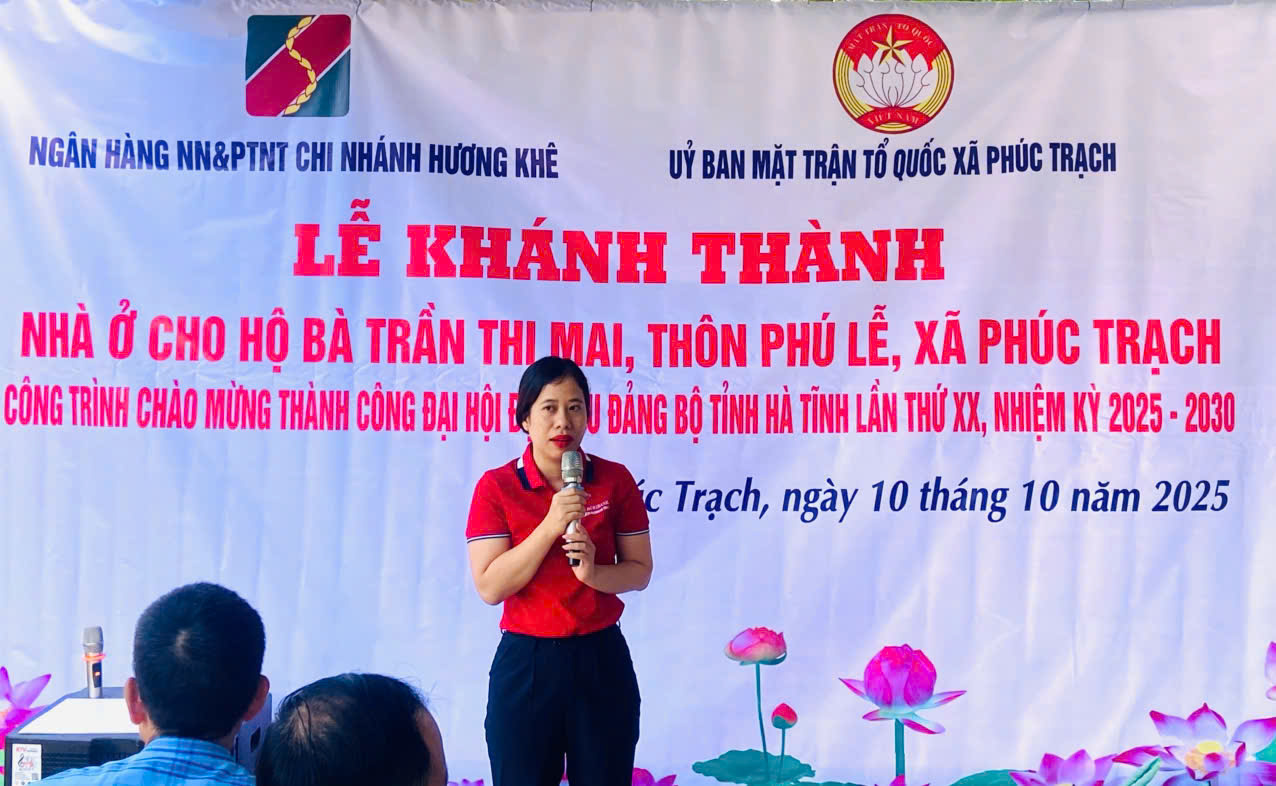 Gia đình bà Trần Thị Mai thuộc diện hộ nghèo, hoàn cảnh khó khăn. Ngôi nhà mới được xây dựng với sự hỗ trợ 60 triệu đồng từ Ngân hàng NN&PTNT chi nhánh Hương Khê, cùng với sự chung tay, giúp sức của Hội Nông dân xã và bà con nhân dân thôn Phú Lễ thông qua việc đóng góp ngày công lao động.
