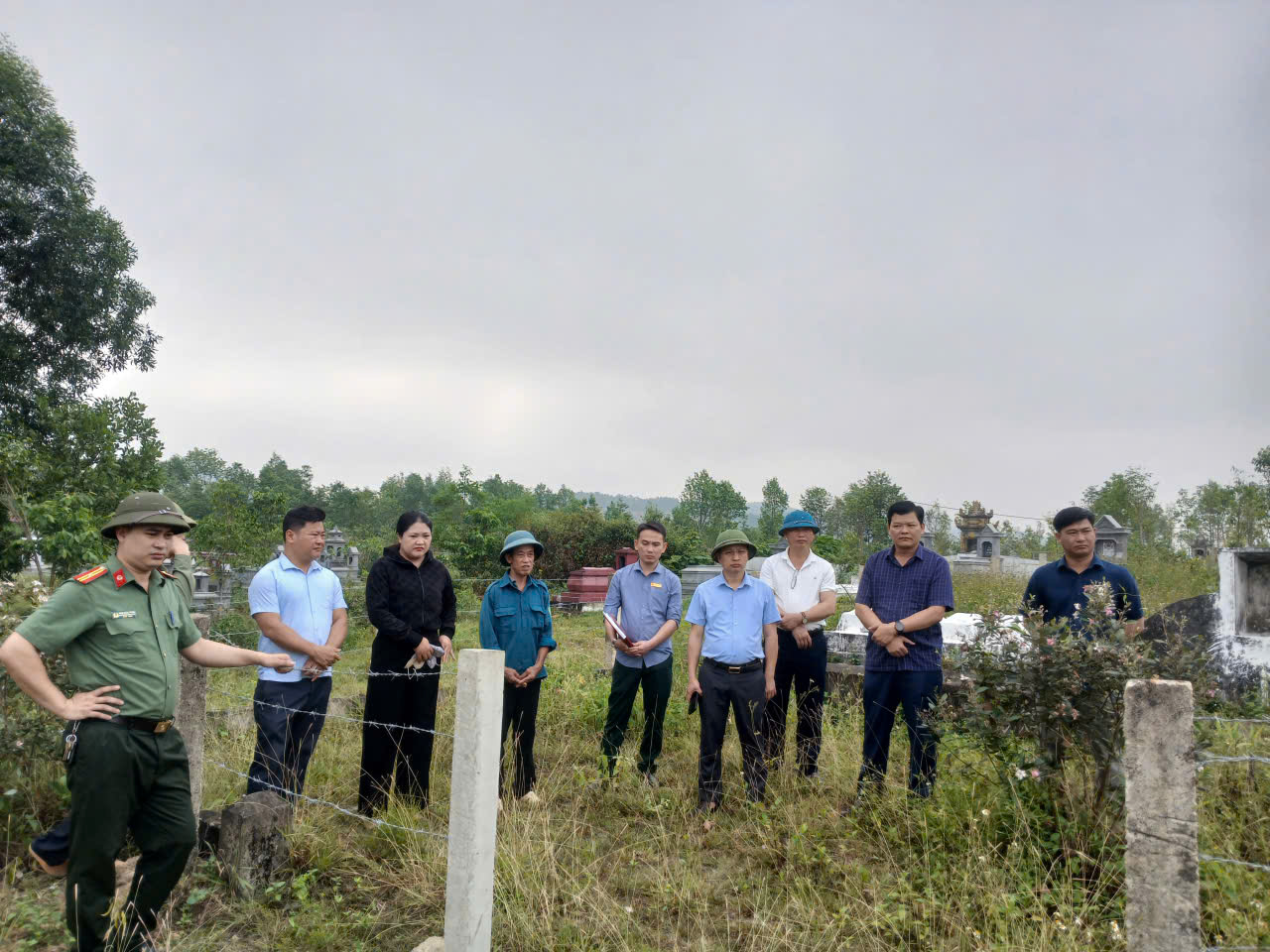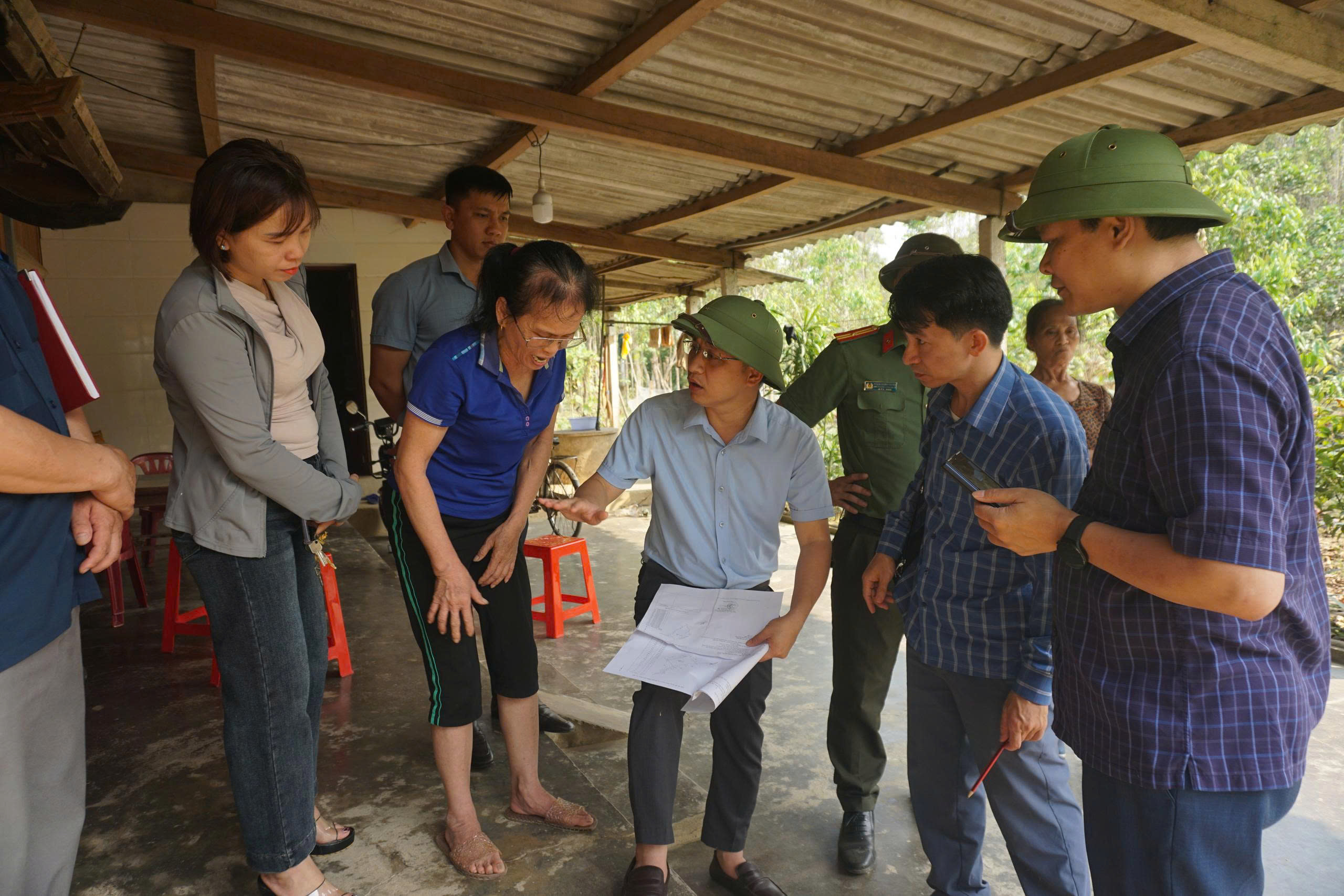 Lãnh đạo UBND xã xuống trực tiếp hiện trường để giải quyết vụ việc.