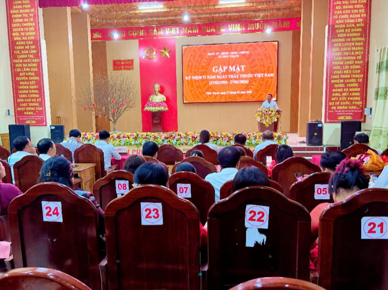 Nhân dịp này, lãnh đạo xã đã tặng hoa chúc mừng và gửi lời chúc sức khỏe, tri ân sâu sắc đến toàn thể cán bộ, nhân viên y tế xã và đội ngũ y tế thôn, bản vì những đóng góp quan trọng đối với sự nghiệp chăm sóc và bảo vệ sức khỏe Nhân dân. Buổi gặp mặt diễn ra trong không khí trang trọng, đầm ấm, thể hiện sự quan tâm của cấp ủy, chính quyền địa phương đối với đội ngũ cán bộ y tế, qua đó tiếp thêm động lực để đội ngũ cán bộ, nhân viên y tế xã Phúc Trạch tiếp tục hoàn thành tốt nhiệm vụ được giao, góp phần xây dựng quê hương ngày càng phát triển.