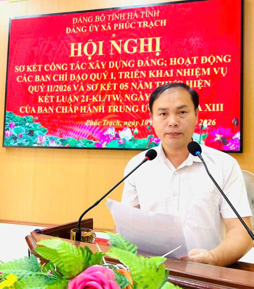 Hội nghị do các đồng chí Thường trực Đảng ủy xã chủ trì. Tham dự hội nghị có đồng chí Phan Ngọc Long – Phó Chủ nhiệm Ủy ban Kiểm tra Tỉnh ủy, các đồng chí trong Ban Chấp hành Đảng bộ xã, trưởng các ban, ngành, đoàn thể, thành viên Đoàn công tác chỉ đạo cơ sở và Bí thư các Đảng bộ, Chi bộ cơ sở, Chi bộ trực thuộc. Quý I năm 2026, Đảng bộ xã Phúc Trạch đã tập trung lãnh đạo, chỉ đạo toàn diện và đạt nhiều kết quả nổi bật: tổ chức thành công cuộc bầu cử đại biểu Quốc hội khóa XVI và đại biểu HĐND các cấp với tỷ lệ cử tri tham gia đạt 100%; bầu đủ 19 đại biểu HĐND xã đảm bảo cơ cấu, thành phần. Công tác xây dựng Đảng tiếp tục được tăng cường, kết nạp 12 đảng viên mới; triển khai hiệu quả mô hình “Chi bộ 4 tốt, Đảng bộ 4 tốt”; chất lượng sinh hoạt chi bộ từng bước được nâng lên, 100% chi bộ hoàn thành tốt nhiệm vụ trở lên.
