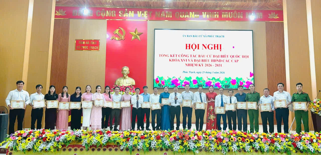 Chiều ngày 25/3/2026, Ủy ban bầu cử xã Phúc Trạch tổ chức Hội nghị tổng kết công tác bầu cử đại biểu Quốc hội khóa XVI và đại biểu Hội đồng nhân dân các cấp, nhiệm kỳ 2026–2031.Tham dự hội nghị có các đồng chí trong Thường trực Đảng ủy, HĐND, UBND, Ủy ban MTTQ xã; các thành viên Ủy ban bầu cử, Ban bầu cử, Tổ bầu cử và đại diện các thôn, bản trên địa bàn.Tại hội nghị, các đại biểu đã được nghe báo cáo tổng kết công tác bầu cử. Theo đó, cuộc bầu cử đại biểu Quốc hội khóa XVI và đại biểu HĐND các cấp nhiệm kỳ 2026–2031 trên địa bàn xã đã được tổ chức dân chủ, đúng luật, an toàn, tiết kiệm và thực sự trở thành ngày hội lớn của toàn dân. Toàn xã có 11.763 cử tri tham gia bỏ phiếu, đạt tỷ lệ 100%. Công tác chuẩn bị được triển khai đồng bộ, chặt chẽ; công tác hiệp thương, giới thiệu người ứng cử, tuyên truyền, đảm bảo an ninh trật tự được thực hiện nghiêm túc, đúng quy định.Kết quả, xã Phúc Trạch đã bầu đủ 19 đại biểu HĐND xã khóa XXII, nhiệm kỳ 2026–2031, đảm bảo cơ cấu, thành phần, chất lượng theo quy định; không phát sinh đơn thư khiếu nại, tố cáo; tình hình an ninh chính trị, trật tự an toàn xã hội được giữ vững. Tại Hội nghị đã trao giấy chứng nhận cho 19 đại biểu HĐND xã khóa XXII, nhiệm kỳ 2026–2031.Hội nghị đã nghe các tham luận từ các ban, ngành, đơn vị, tập trung làm rõ những kết quả nổi bật trong công tác tổ chức bầu cử. Đáng chú ý, tham luận của Ban Xây dựng Đảng xã nhấn mạnh: công tác tuyên truyền được triển khai đồng bộ, kịp thời, với nhiều hình thức phong phú như hệ thống truyền thanh, tuyên truyền trực quan, mạng xã hội và sinh hoạt chi bộ, đoàn thể; nội dung bám sát các mốc thời gian, góp phần nâng cao nhận thức của cán bộ, đảng viên và Nhân dân. Nhờ đó, cử tri tích cực tham gia, tỷ lệ đi bầu đạt 100%, góp phần quan trọng vào thành công chung của cuộc bầu cử.