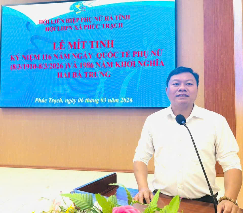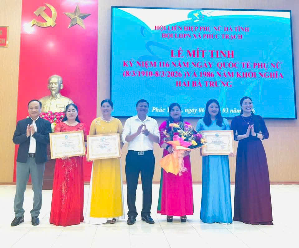 Sáng ngày 06/3/2026, Hội Liên hiệp Phụ nữ xã Phúc Trạch tổ chức Lễ kỷ niệm 116 năm Ngày Quốc tế Phụ nữ (8/3/1910 – 8/3/2026) và 1986 năm Khởi nghĩa Hai Bà Trưng tại Nhà văn hóa cộng đồng xã. Tham dự buổi lễ có đồng chí Hoàng Quốc Nhã – Bí thư Đảng ủy, Chủ tịch HĐND xã, đồng chí Trần Thị Hồng Thắm – Phó Bí thư Thường trực Đảng ủy, cùng các đồng chí trong Ban Thường vụ Đảng ủy, đại diện lãnh đạo HĐND, UBND, Ủy ban MTTQ, các ban, ngành, đoàn thể cấp xã và đông đảo cán bộ, hội viên phụ nữ trên địa bàn. Tại buổi lễ, các đại biểu và hội viên phụ nữ đã cùng ôn lại truyền thống 116 năm Ngày Quốc tế Phụ nữ 8/3 và 1986 năm Khởi nghĩa Hai Bà Trưng, qua đó khơi dậy niềm tự hào về truyền thống vẻ vang của phụ nữ Việt Nam, tiếp tục phát huy vai trò, trách nhiệm trong xây dựng gia đình hạnh phúc và góp phần phát triển kinh tế - xã hội tại địa phương